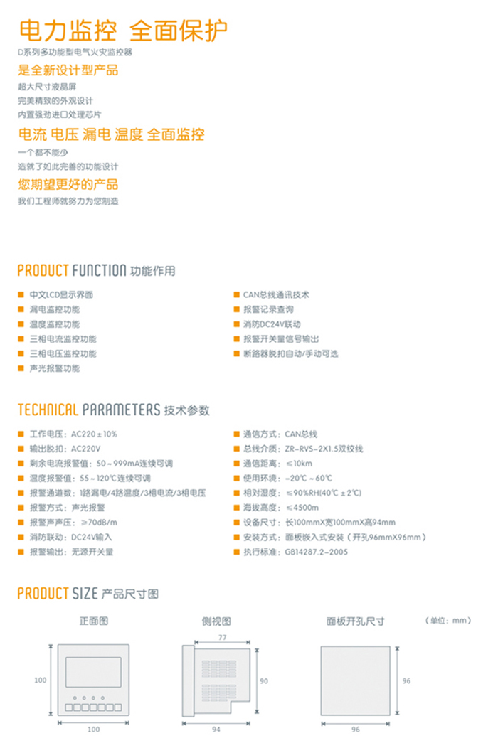 AFD2-D系列剩余电流式火灾监控探测器 多功能型